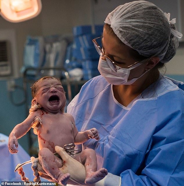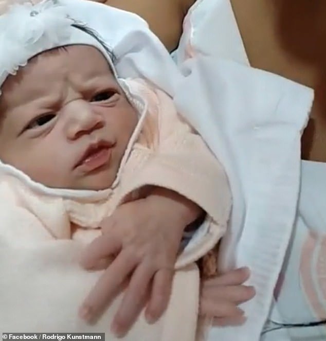 Daiane de Jesus Barbosa, mẹ của bé gái, đã thuê nhiếp ảnh gia Rodrigo Kunstmann để ghi lại giây phút đầu tiên con mình đến với thế giới này. Chính nhờ vậy mà anh đã có cơ hội bắt gặp khoảnh khắc hài hước này, khi các bác sĩ đang cố làm cô bé cất tiếng khóc đầu tiên trước khi cắt rốn.