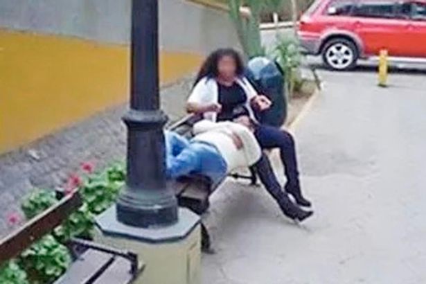 Ngồi trên ghế băng là một phụ nữ mặc áo khoác nhẹ trắng cùng áo bên trong màu đen và một người đàn ông mặc quần jean, áo trắng đang gối đầu lên đùi người phụ nữ. Khuôn mặt của người đàn ông đã được làm mờ - đây là một trong những tiêu chuẩn của Google Maps nhằm bảo vệ quyền riêng tư cá nhân. Tuy nhiên, người chồng vẫn nhận ra người vợ qua bộ trang phục quen thuộc.