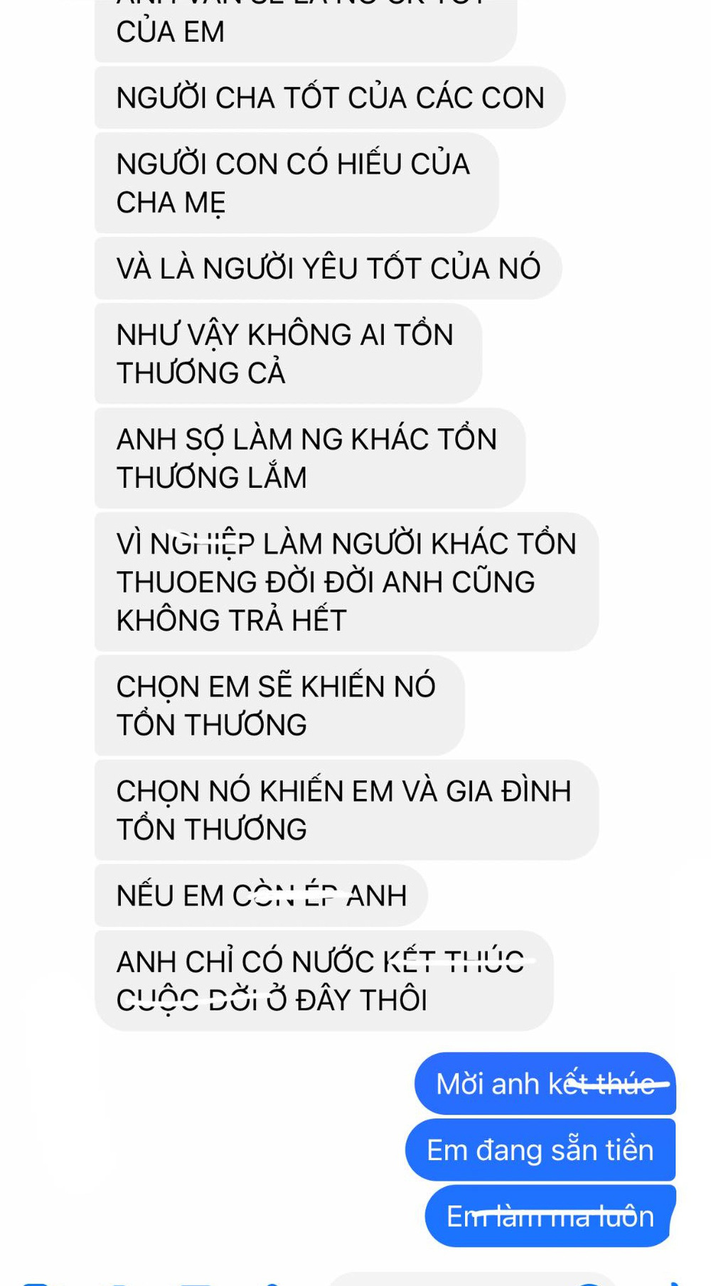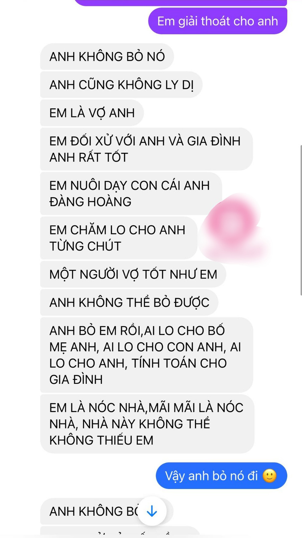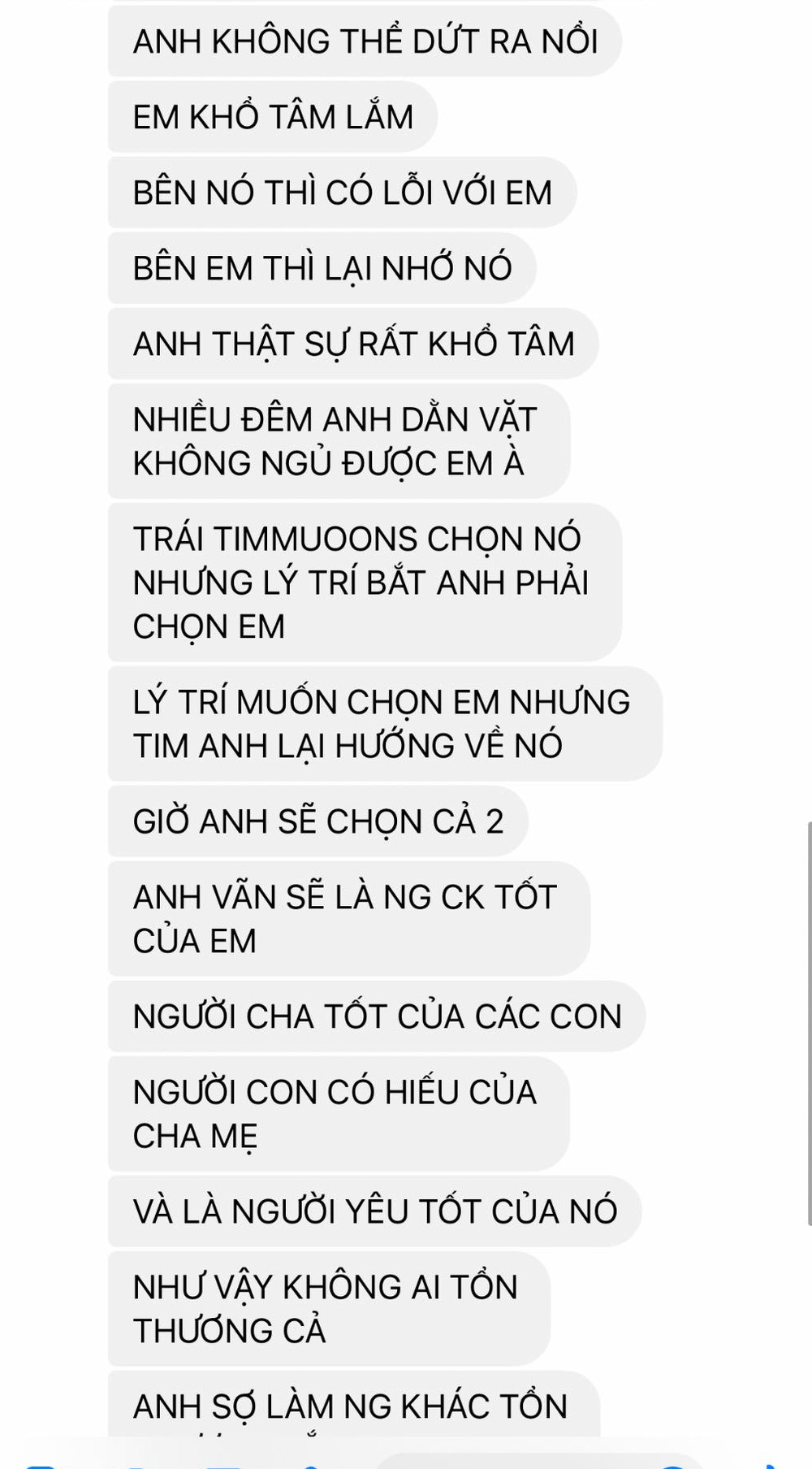 Kèm theo đó là những tin nhắn do người chồng gửi qua. Anh ta có bồ và đòi chọn cả bồ lẫn vợ vì chọn ai anh ta vẫn tiếc nuối.
