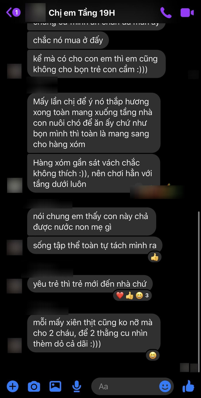 Và người cùng tầng nhìn thấy rồi đem chuyện kể lên nhóm chat chị em cùng tầng chung cư tôi sống, một chị vẫn chơi với tôi đã chụp lại.