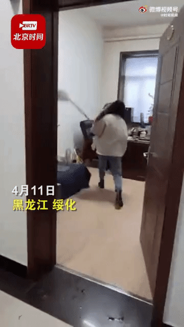 Quá phẫn nộ và uất ức vì hành động kinh tởm của cấp trên, nạn nhân quyết định phải dạy cho lão ta một bài học. Theo đoạn video cho thấy, nhân vật “nữ cường nhân” đã rất tức giận xông thẳng vào phòng của cấp trên. Cô gái không chỉ mắng chửi, làm cho ra lẽ, cô còn lấy chậu nước hất vào mặt, dùng chổi lau nhà đánh vào người kẻ quấy rối.