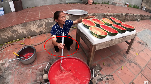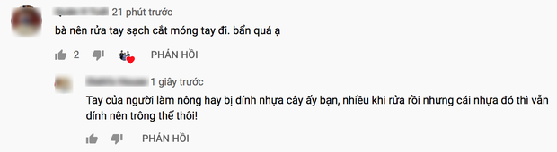 Dù clip làm thạch dưa hấu diễn ra khá trơn tru nhưng vẫn có người tinh mắt nhìn ra "vấn đề" bên trong. Cụ thể, một người xem đã bình luận và nhắc về việc bà Tân để móng tay và chưa rửa sạch tay trước khi làm đồ ăn.