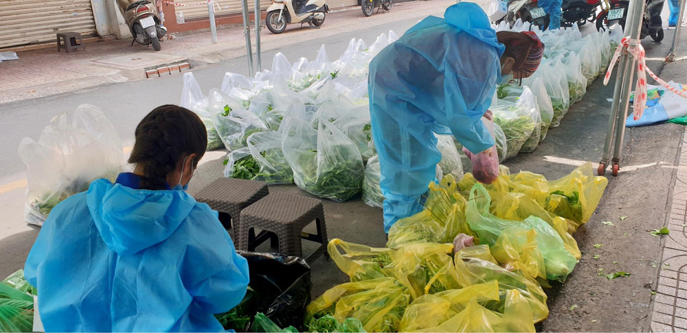Chia sẻ với chúng tôi, cô gái 9X cho biết công việc hàng ngày của đội tình nguyện là trực chốt - phân chia và trung chuyển đồ ăn, nhu yếu phẩm cho bà con trong khu vực Vườn chuối. Đồng thời sẽ hỗ trợ điều phối, làm hành chính phụ cho các bác sĩ lấy mẫu xét nghiệm.