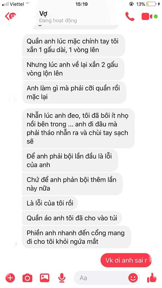 - Toàn thấy nhiều anh vào comment thế này thì không dám lấy vợ nhưng các anh không đọc pic cuối à? Anh này đã bị phát hiện ăn vụng 1 lần rồi nên chị vợ mới mất lòng tin và soi mói. Còn thì ai cũng đầy việc, rảnh rỗi đâu mà tự nhiên thế?