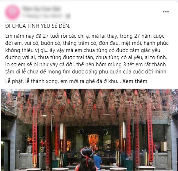 Câu chuyện sau khi chia sẻ khiến hội chị em càng có niềm tin hơn vào cuộc sống. Dưới phần bình luận, ai nấy đều xin địa chỉ chùa mà cô gái đã đi để đến đó câu duyên ngay lập tức.