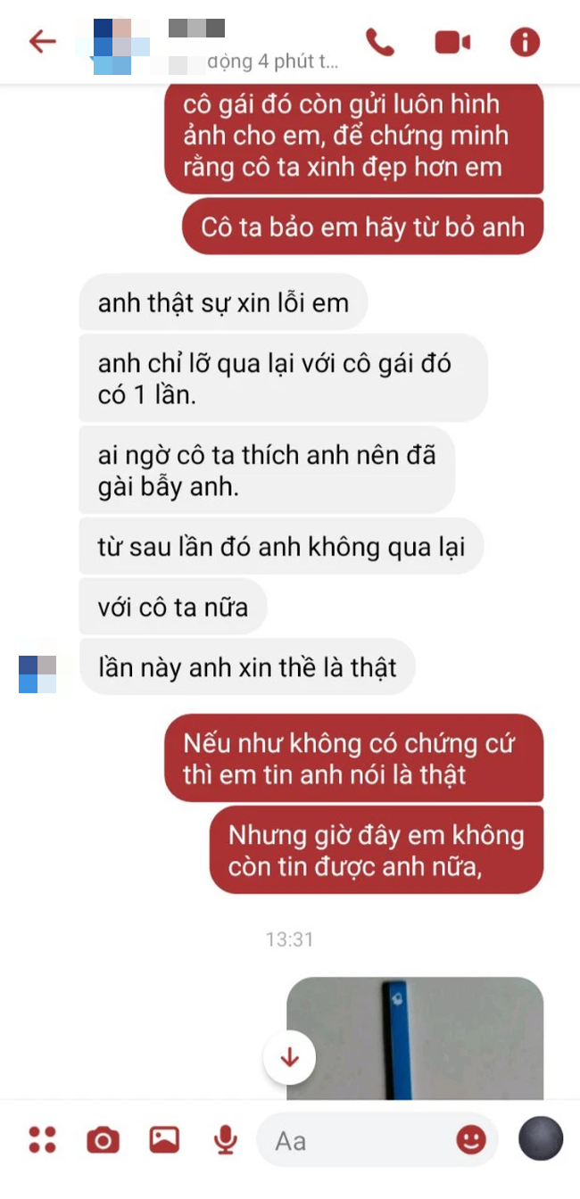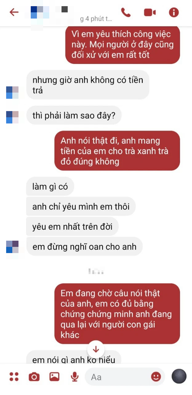 "Thì ra 2 năm nay yêu nhau, bạn trai chỉ lợi dụng tiền của tôi. Anh đâu có yêu tôi, mang tiền của tôi đi nuôi người con gái khác. Bị bạn trai phản bội, tôi không có tiếc, chỉ thấy hối hận, tại sao lớn đầu rồi mà còn dại trai." - cô gái tuyệt vọng than thở.