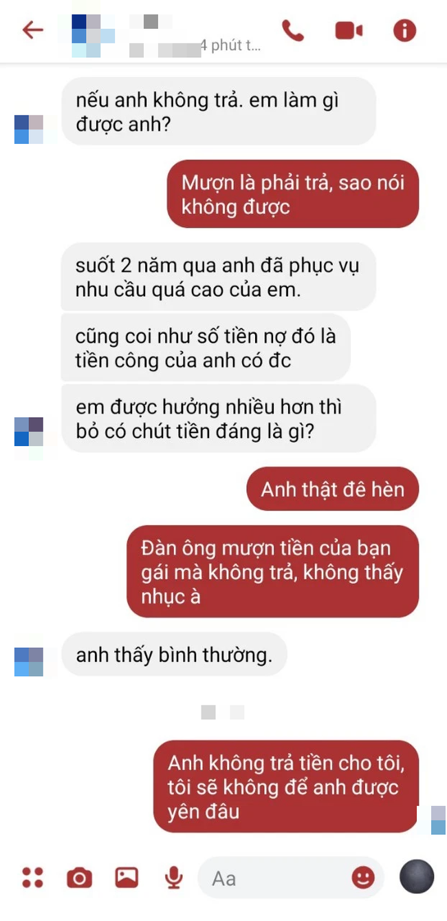 Sau những bằng chứng đanh thép không thể chối cãi, gã người yêu mặt dày vẫn nhất quyết không trả tiền, thậm chí còn trơ tráo nhận rằng đó là "tiền công" yêu đương với cô trong 2 năm qua.