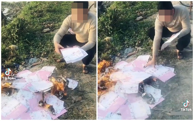 Cách đây không lâu, trên mạng xã hội lan truyền một clip chàng trai đang ngồi đốt từng chiếc thiệp cưới với đôi mắt đượm buồn.