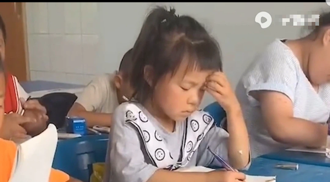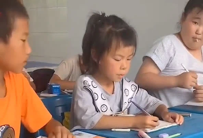 Khi phát hiện hành vi chép bài của cô bé, cậu bé đã cầm vở của mình để tránh bị nhìn thấy. Lúc này, cô bé lập tức ngồi thẳng người với bộ dạng nghiêm túc và hí hoáy viết vào vở bài tập rồi... rung đùi cho đỡ ngại.