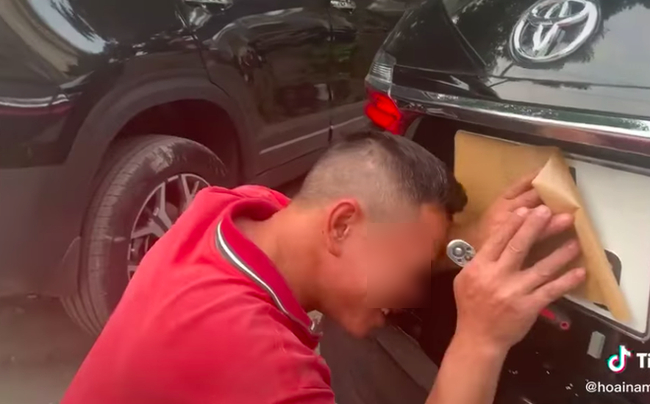 Theo đó, khi được tự tay bóc tấm bìa che biển kiểm soát ô tô của mình, anh ta không giấu nổi sự hồi hộp, căng thẳng.