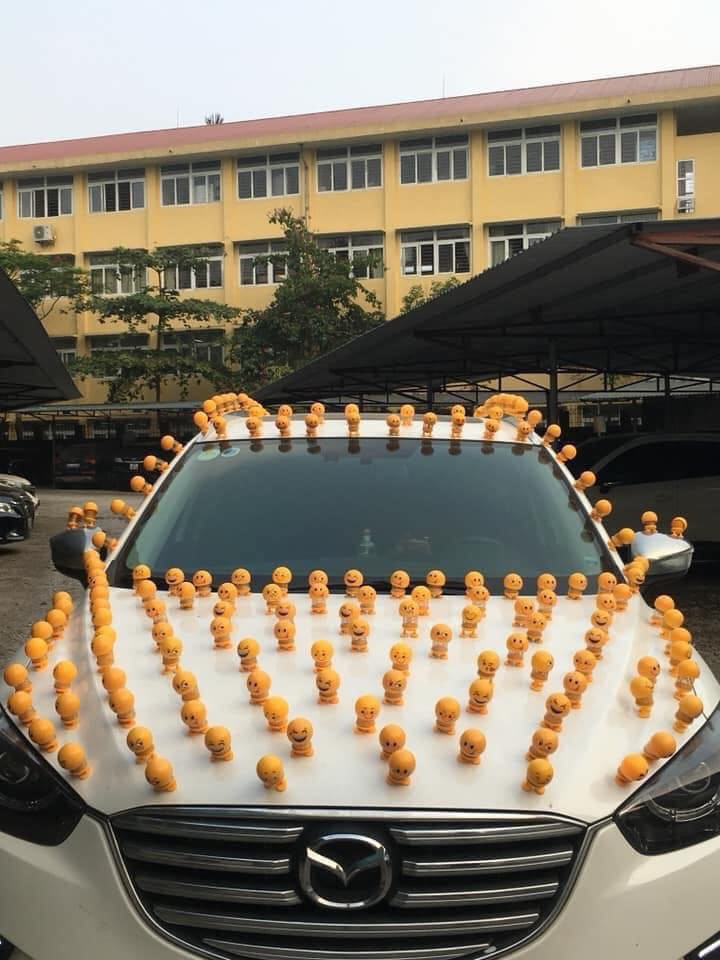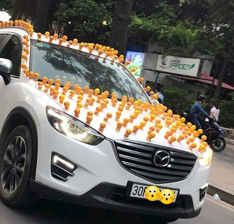 Được biết, thú nhún Emoji lò xo bắt nguồn từ những clip hài hước được đăng tải trên MXH Trung Quốc và nhanh chóng trở thành xu hướng cực hot khi về Việt Nam. Dân tình không ngần ngại bắt trend bằng cách bày trò mua hàng tá con thú nhún Emoji lò xo về gắn đầy trên xe, ô tô đi lại.