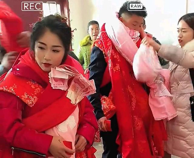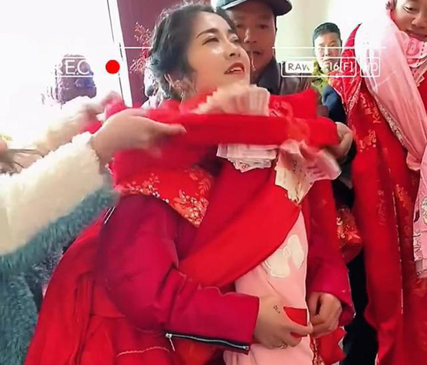 Tuy nhiên, nhà gái đã bất ngờ làm một việc khiến nhà trai không khỏi ngỡ ngàng. Bố mẹ cô dâu đã mang ra 30 tấm chăn và khoác lên người cặp đôi trẻ. Điều đặc biệt là bên trong của những tấm chăn là đầy tiền mặt.
