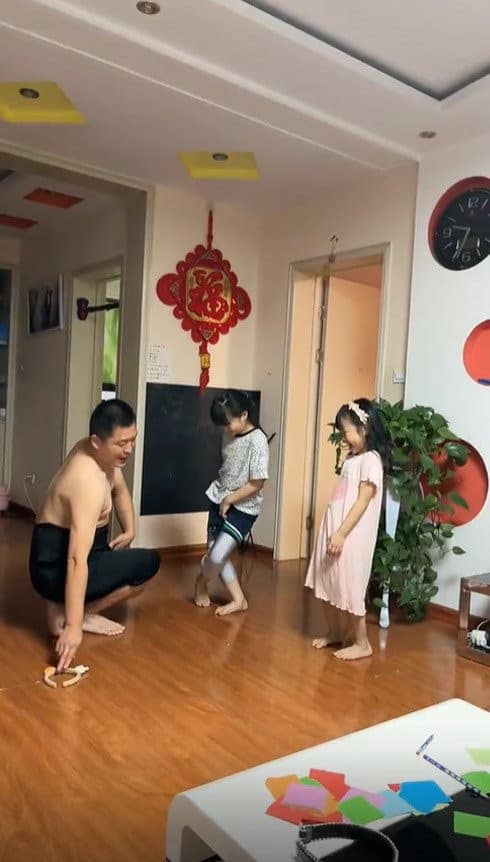[+8712 likes] Không khéo thứ mà hai đứa nhóc học được là: “Con hiểu rồi bố à, sau này con sẽ mặc váy mà để ngực trần như bố.”