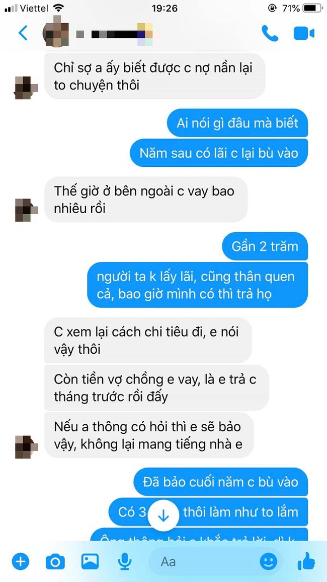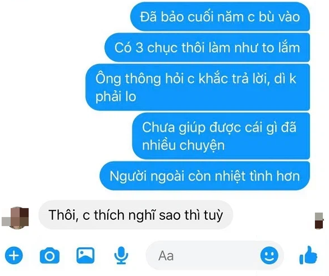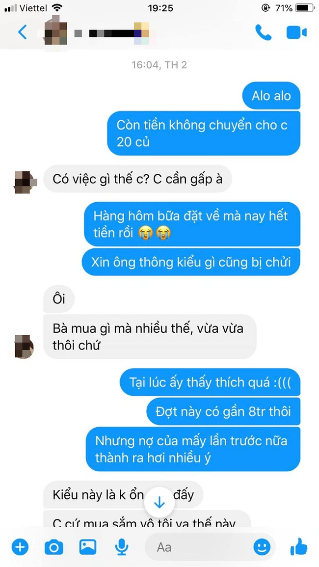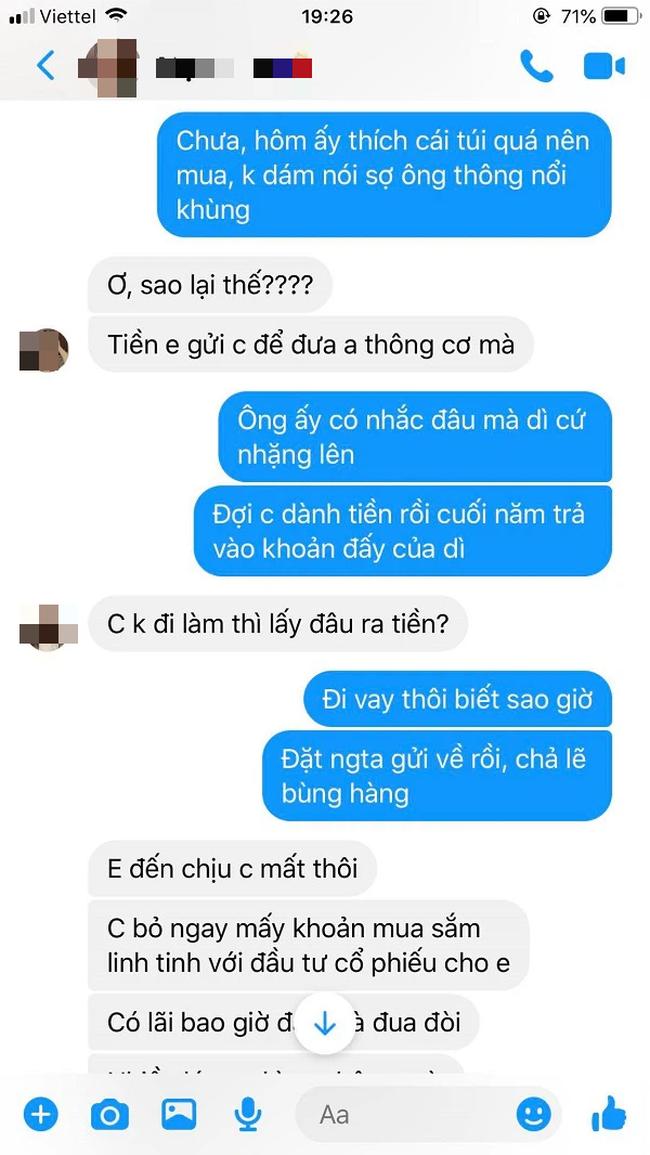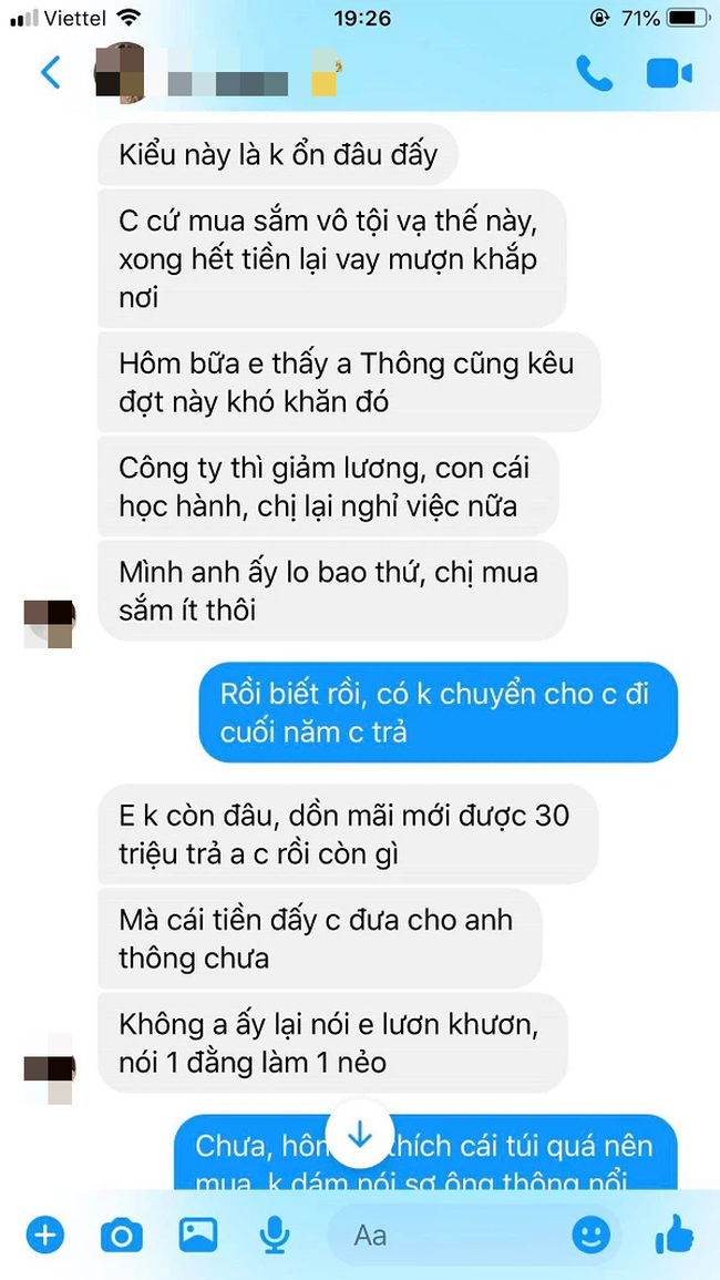 Kèm theo lời tâm sự là ảnh chụp lại cuộc nói chuyện giữa vợ và cô em gái. Đọc những lời nói đầy vô tâm và dửng dưng của người vợ, dân tình cũng phát ức thay người chồng: