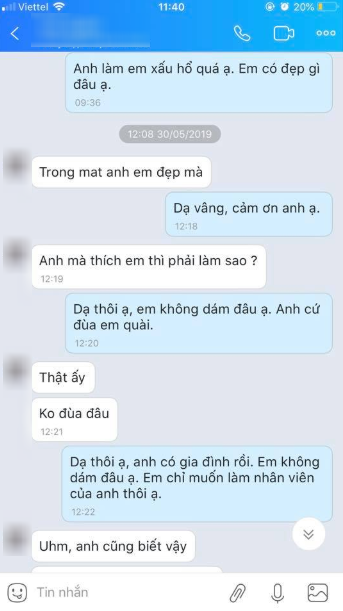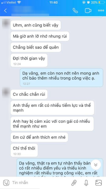 Kèm theo những dòng tâm sự đầy nỗi sợ hãi và bất lực là ảnh chụp lại một loạt tin nhắn đối thoại mà vị Giám đốc đã có gia đình dành cho nữ thư ký. Mặc dù đã hết sức kiên quyết, khéo léo từ chối nhưng sự đeo bám và biến thái của vị Sếp này, hay đỉnh điểm là nụ hôn cưỡng ép kia đã khiến cô nàng này phải bỏ việc không lương ngay lập tức.