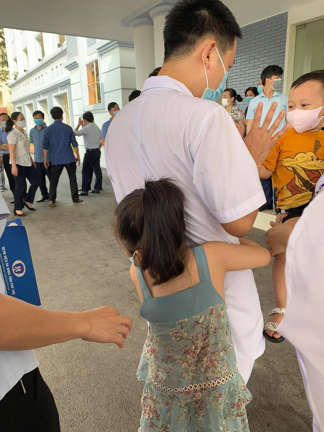 Ngày tiễn bố, hai bé con đã ôm chặt lấy bố không rời, đòi đi cùng. Dù mạnh mẽ cỡ nào người bác sĩ ấy cũng đã rơi nước mắt, để lại lời hứa nhất định sẽ trở về bình an rồi cùng đồng nghiệp lên chuyến xe tới Bắc Giang.