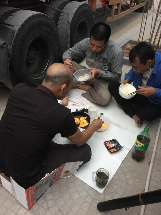 Đi kèm với những dòng chia sẻ là hình ảnh những người tài xế container đang tranh thủ dừng đỗ ở trạm nghỉ, tránh vội quả trứng rồi bầy mâm cơm bên đường cùng nhau ăn.