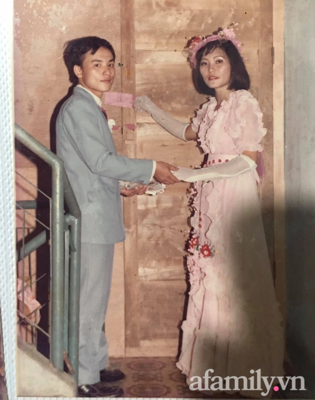 Ngày cưới, ba mặc vest màu ghi, đẹp trai như tài tử điện ảnh. Mẹ diện váy cưới màu hồng, đeo bao tay ren, trên đầu cũng đội chiếc lúp hồng nho nhỏ. Đến bây giờ nhìn lại ảnh cưới, mẹ vẫn xuýt xoa vì ba đẹp trai quá cỡ.