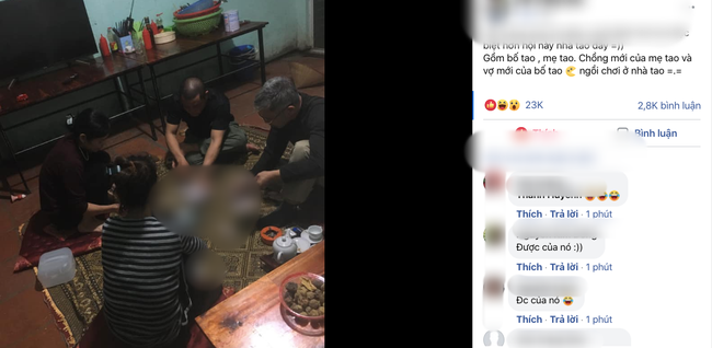 “Đố mọi người tìm đâu ra hội đánh bài nào đặc biệt hơn hội này nhà tôi đấy. Gồm bố tôi, mẹ tôi, chồng mới của mẹ tôi và vợ mới của bố tôi, ngồi chơi ở nhà tôi".