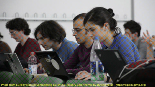 Được biết, hiện tượng ảo thị này là do Øyvind Kolås - một "nghệ sĩ kỹ thuật số" tạo ra. Tấm hình đen trắng được thêm vào các đường kẻ lưới được bão hòa màu (satured colour), và não bộ sẽ tự động lấp đầy các ô trống trong đó.