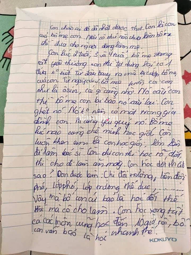 22/05/2021 15:11Bức thư nhức nhối rơi trong chung cư ở Hà Nội khiến nhiều bố mẹ có hai con thức tỉnh: 'Con ghét nó. Nó không nên có mặt trong gia đình'
