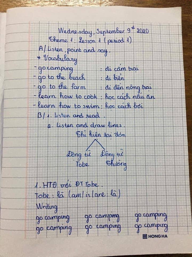 Mới đây trong một hội nhóm trên Facebook, một phụ huynh có tên B.T đã chia sẻ ảnh chụp bài tập Tiếng Anh của con kèm theo dòng chia sẻ: "Con em năm nay học lớp 5. Mấy hôm về cứ lúi cúi viết gì đó như giấu giếm. Em hỏi chuyện, con nói: 'Cô bắt viết rồi học thuộc lòng các thì Tiếng Anh (hơn 3 trang). Con học không thuộc được nên bị cô phạt chép 10 lần. Con không chép nổi thì cô phạt tăng 20 lần'. Cô ghi nhận xét là 'lại không thuộc bài' và nói con trai em về bảo mẹ ký vào".