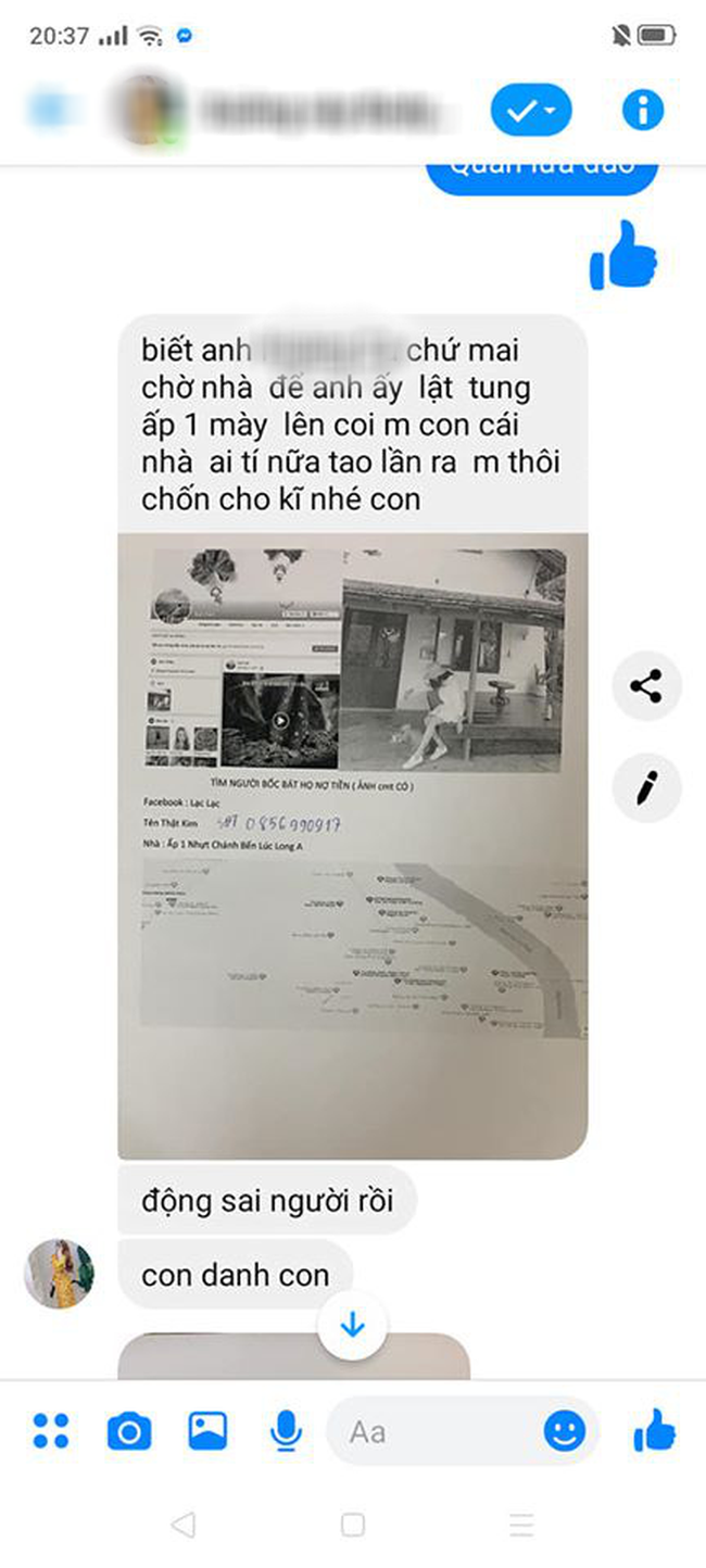 Bây giờ shop đó còn in hình mình khắp nơi ghi cùng phiếu nợ 50 triệu rồi chụp hình lại, gửi cho bạn bè mình nữa. Nó đăng cả số điện thoại chị mình kèm theo".