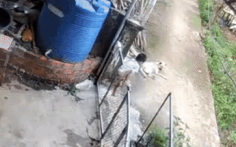 Ai cũng tưởng bé trốn đi chơi, chính mẹ cậu bé cũng hiểu nhầm như thế. Không ngờ chỉ vài giây sau đó, cậu bé dừng lại ở con đường bê tông ngay trước nhà, rồi nhẹ nhàng nằm xuống để... ngủ cùng chú chó!