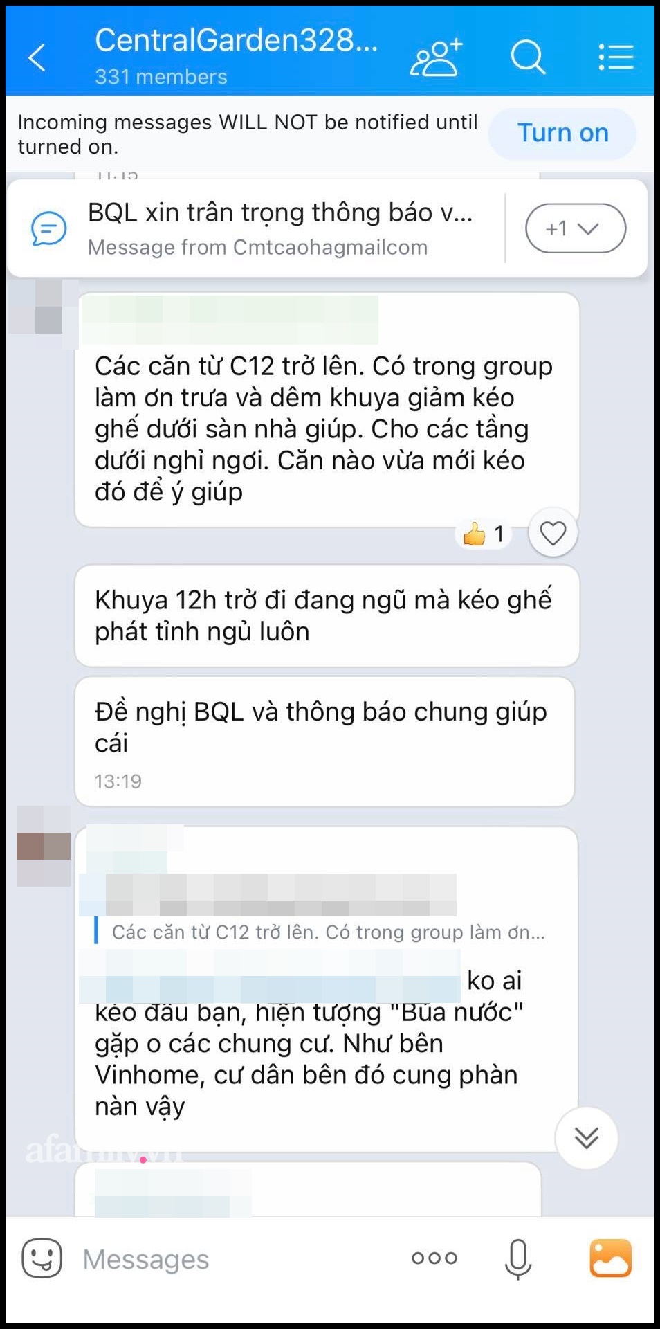 Cụ thể, các group chung của cư dân trong chung cư dạo gần đây xuất hiện nhiều phàn nàn về việc hàng xóm kéo ghế trên sàn nhà vào buổi trưa hoặc đêm khuya. Điều này gây mất trật tự ảnh hưởng đến những căn hộ xung quanh.