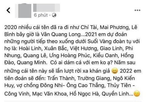 30/12/2020 21:28Ca sĩ Vân Quang Long vừa mất, một tài khoản Facebook bị cư dân mạng ném đá tới tấp vì phát ngôn ác ý rủa nhiều nghệ sĩ khác