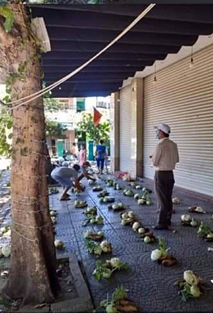 Mới đây, trên MXH lan truyền bức ảnh bác tổ trưởng dân phố xếp lần lượt từng suất rau củ quả cho từng hộ dân trong khu phố. Và để đảm bảo công tác phòng chống dịch, bác gọi từng nhà đến nhận tránh tình trạng tập trung đông người.