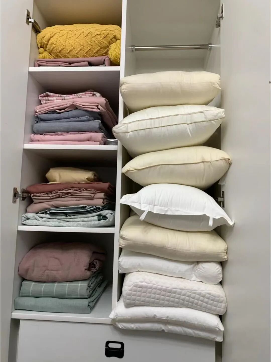 Mẹo nhỏ: Nếu có nhiều bộ đồ khác nhau, dán nhãn nhỏ lên từng vỏ gối để dễ tìm – nhanh gọn y như trong khách sạn.