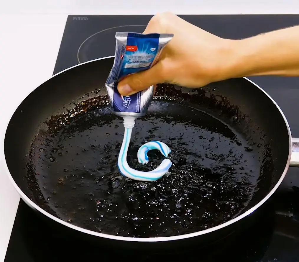 3. Sử dụng kem đánh răng: Thoa một lượng kem đánh răng lên bề mặt của nồi chảo, sau đó sử dụng bàn chải mềm để cọ sạch. Sau khi rửa sạch bằng nước, bạn có thể lau khô nồi chảo bằng khăn mềm hoặc khăn giấy.