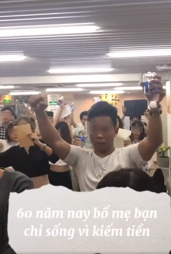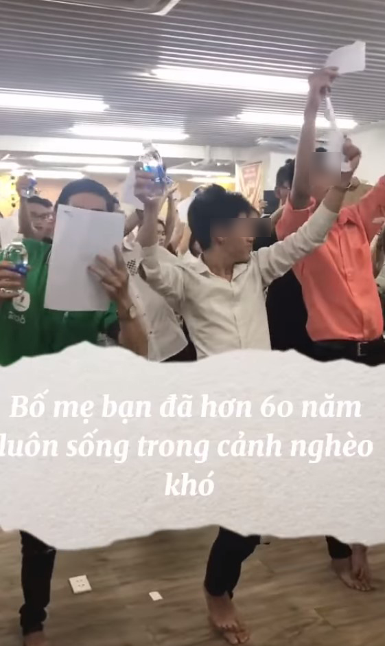 Người quản trò đứng trước mặt nhóm người không ngừng nói: "Đổ mồ hôi không là gì cả. Trong quá trình chinh phục mục tiêu, mồ hôi ướt áo là chuyện bình thường. Bố mẹ bạn hơn 60 mươi năm nay đều sống trong nghèo khó, luôn sống trong chiếc áo đầy mồ hôi. Vậy tại sao chỉ vì 1 chút ích kỉ của bản thân, chỉ vì một chút mồ hôi, chỉ vì 1 chút cảm giác đau đớn mà bạn cho phép mình dừng lại.