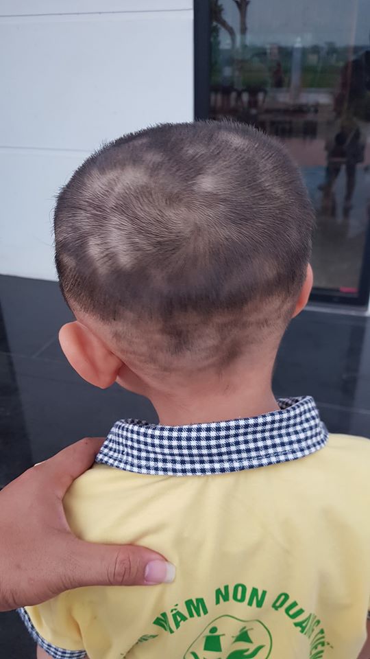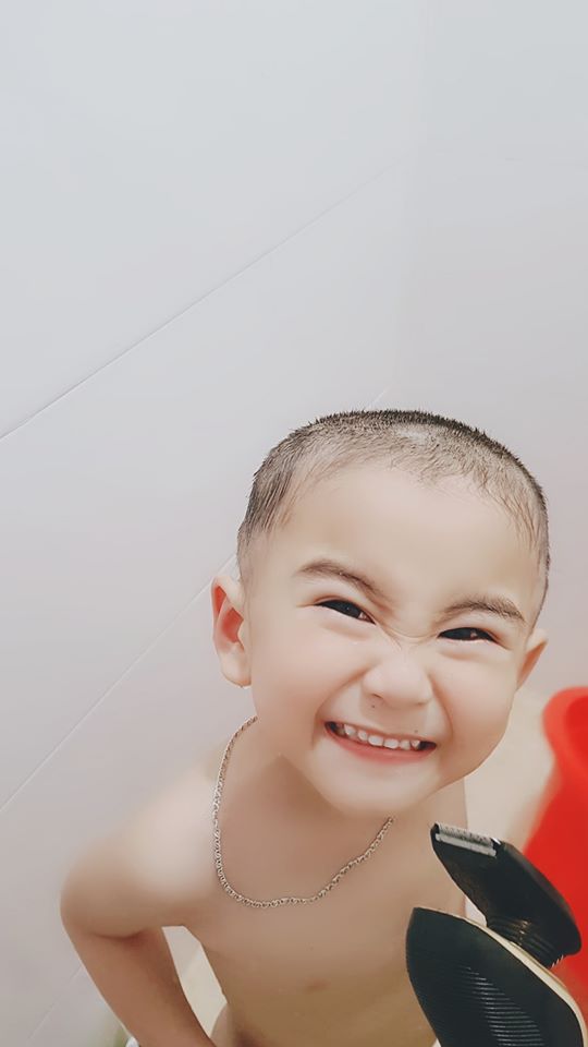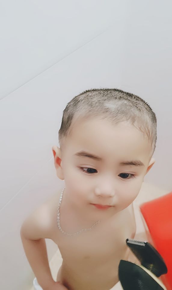 Em bé tên là Hoàng Dương, năm nay lên 3 tuổi rồi và đây là lần đầu được bố cắt tóc cho ở nhà. Dù cái đầu nhìn chẳng đâu vào đâu nhưng vì khuôn mặt cậu bé dễ thương quá nên người xem cũng quên luôn sự thất bại của ông bố trẻ mất rồi.
