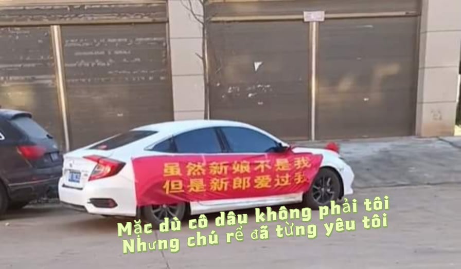 Dù hình ảnh quay từ xa không thấy rõ người bên trong xe nhưng từ nội dung trên tấm băng rôn, ai cũng có thể nhận ra đây không phải sự việc ngẫu nhiên mà nhất định là chiêu trò của tình cũ khi cố tình phá tan bầu không khí vui mừng trong ngày cưới. Hành động này cho thấy đối phương không cam tâm nên cố tình khiêu khích cô dâu hoặc gây hấn với chú rể.