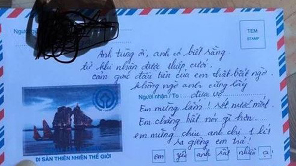 Chiếc phong bì thoạt nhìn khá dày, tưởng anh người yêu mừng nhiều nhưng không ngờ...nhiều thật, nhưng là nhiều phong bì cơ. Anh chàng người yêu cũ bọc 3 chiếc phong bì nhỏ vào bên trong 1 chiếc phong bì lớn để cô dâu bóc dần trong hồi hộp. Cuối cùng, món quà cưới của "người cũ" là 1.000 đồng khiến không cả cô dâu, chú rể mà cả dân mạng đều... ngã ngửa.