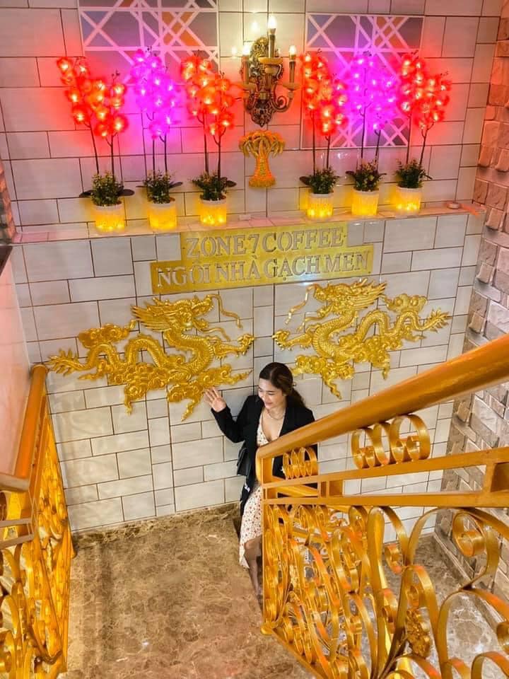 Căn nhà rộng hơn 1.500 m2, là khu phức hợp giữa cà phê, ăn uống, vui chơi giải trí. Thoạt nhìn không ít ngôi nhà mang một phong cách "nhà của vua Bảo Đại", được trang hoàng rực rỡ đến từng tiểu cảnh. Toàn bộ nội thất của căn nhà đều mang màu vàng sáng chói, gạch lót là gạch nhập từ nước ngoài về với màu vàng chủ đạo. Nhiều khách đến đây còn ví nơi này như một "tiểu Dubai''.