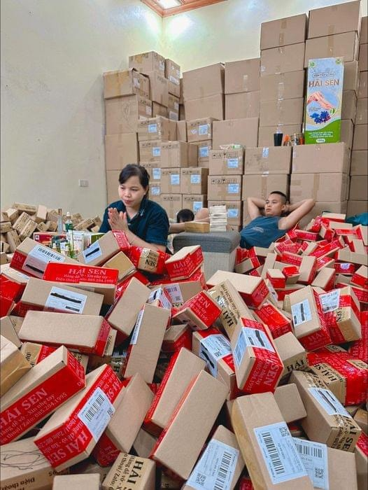 Khung cảnh trong nhà ngổn ngang hàng hoá cũng là background để vợ chồng Hải Sen quay clip và livestream, tạo thành cảnh tượng chốt đơn nhộn nhịp. Một người từng theo học xây kênh tại nhà Hải Sen tiết lộ sau mỗi dịp sale, lượng đơn hàng phải đóng lên đến 1000 - 1500 đơn. Thông tin này là con số ước chừng, chưa được chính chủ xác nhận.