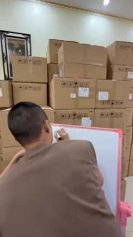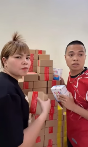 Bên trong nhà không có nhiều trang trí cầu kỳ, thay vào đó là ngập tràn hàng hoá, những thùng carton được cho là đựng sản phẩm nhà Hải Sen xếp kín từ sàn đến tận trần nhà. Từ phòng khách đến tận nhà phụ, bất cứ khu vực nào trong nhà cũng có thể trở thành nơi đóng hàng.