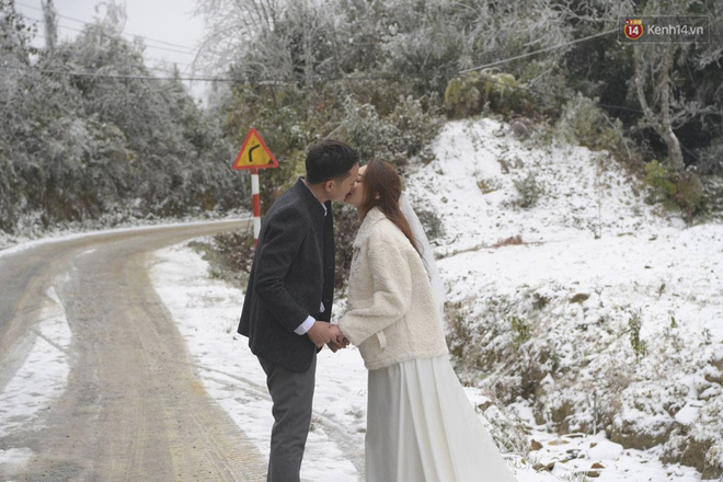 Được chiêm ngưỡng những cành cây đóng băng, được chạm tay vào lớp tuyết dày phủ dày dưới đường đã là một trải nghiệm vô cùng lý thú, thế vậy mà có 1 cặp đôi lại may mắn hơn khi bắt kịp thời điểm tuyết rơi ở Y Tý để cùng nhau chụp ảnh cưới.