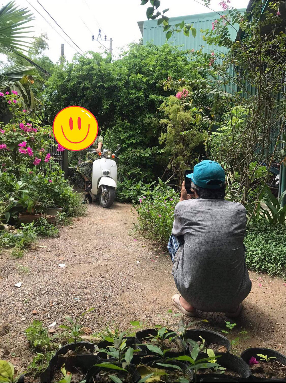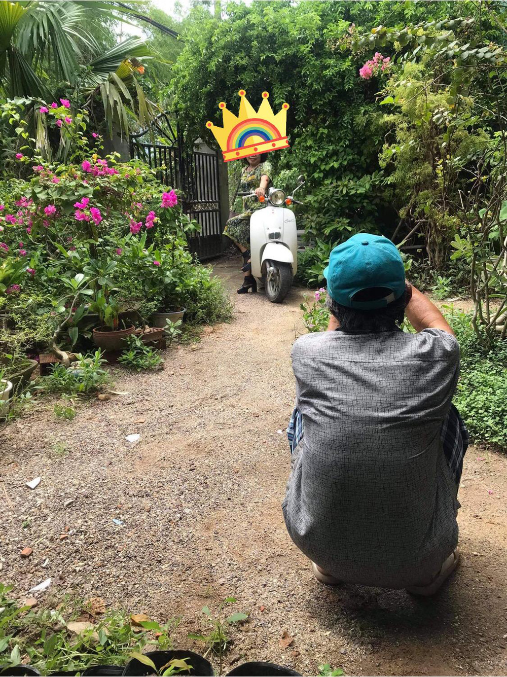 Đính kèm với đó là ba tấm hình người chồng đang ra sức chụp hình cho vợ. Người vợ ăn mặc xinh đẹp, tạo dáng bên xe máy trong một khu vườn nhiều cây cối. Hình ảnh khiến người ta cảm thấy đáng yêu biết bao nhiêu.