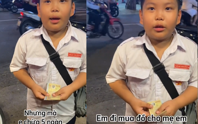 Nhìn thấy rõ ràng trên tay bé trai cầm đủ tiền nhưng lại nhất quyết mặc cả chỉ mua với giá 25.000 đồng khiến chủ quán tò mò hỏi lý do. Lúc này bé trai liền nhanh nhảu đáp: "Em chừa 5 ngàn để em mua đồ cho mẹ em".
