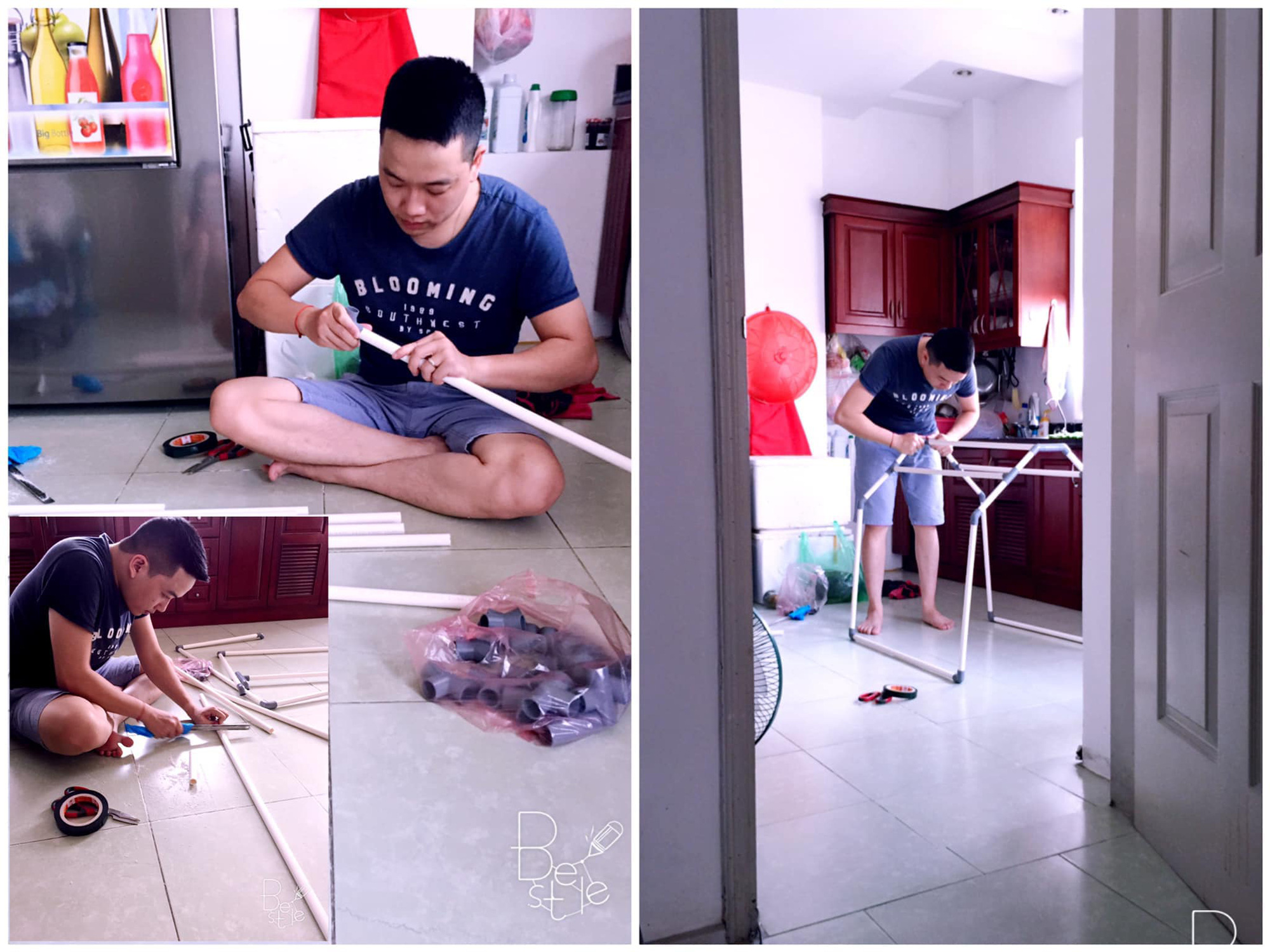 Đúng như những gì Phước mô tả ở bài viết, anh thường là người làm hết việc nhà. Nói tới lí do thì bởi vợ anh vô cùng bận rộn. Phước xong việc trước thì luôn đảm nhận luôn mọi chuyện khác. Bộ ảnh cũng là cách tái hiện cuộc sống hôn nhân của hai vợ chồng.