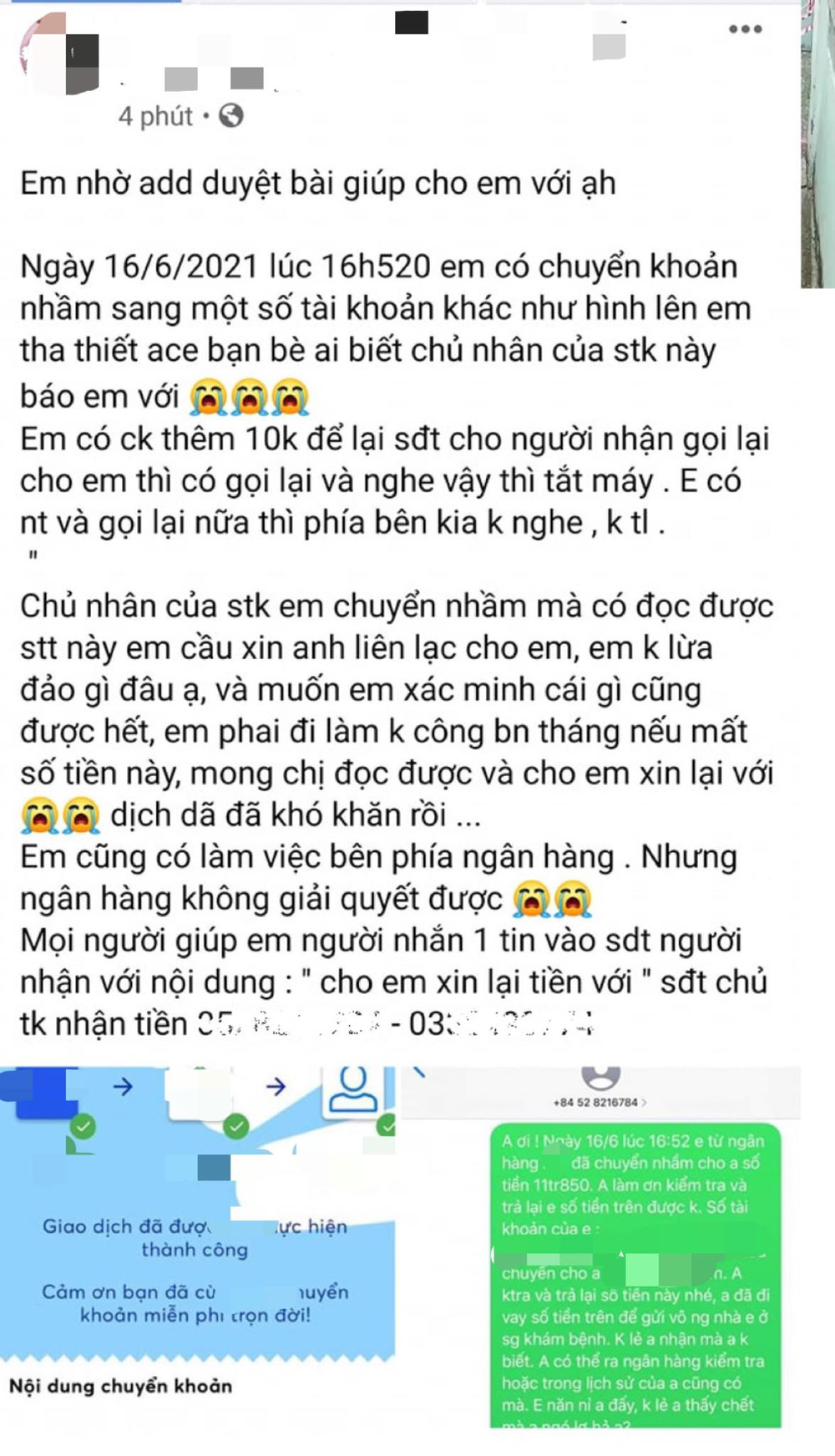 24/07/2021 14:20'Cầu cứu' mọi người đòi giúp 12 triệu chuyển khoản nhầm, cô gái nói gì mà còn bị mắng thêm?