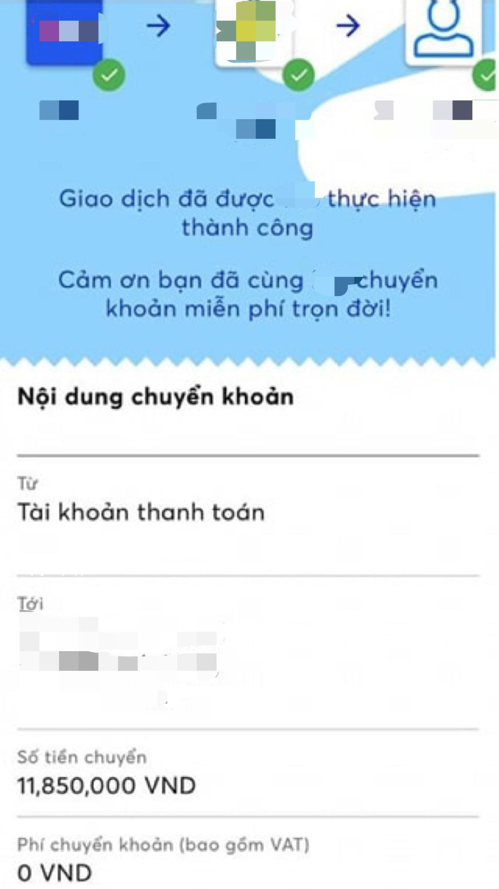 T.V cũng cho hay, cô đã làm việc với ngân hàng nhưng không giải quyết được. Không còn cách nào khác, V đã đăng tải hình ảnh chuyển khoản và cả đoạn tin nhắn với chủ tài khoản để cầu cứu dân mạng.
