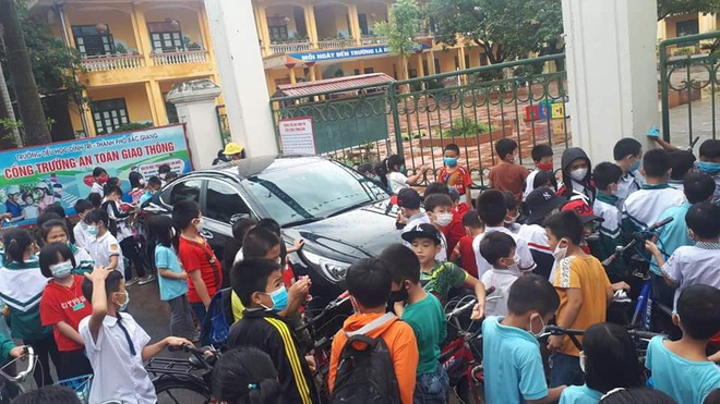 Tuy nhiên, giờ tan học hay đầu giờ vào học thì cần mở cửa lớn để học sinh đến trường hoặc ra về, tránh tình trạng chen chúc. Thế nhưng vì vướng chiếc xe hơi, cổng không thể mở được, các em tiếp tục phải chen nhau qua cửa phụ bé tí, gây ách tắc.