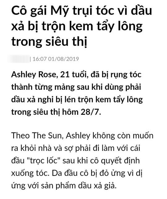 - Hình như có câu chuyện bên Mỹ, cô này bị dị ứng dầu gội hay xả mà.