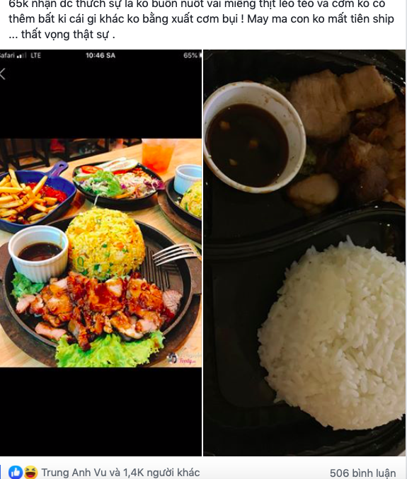 kèm bài đăng là hình quảng cáo suất cơm đầy đặn của quán đó và suất cơm thực tế nhận được. Bài đăng này sau đó đã nhận về rất nhiều ý kiến trái chiều của người dùng mạng.