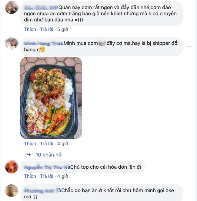 Số khác còn đăng cả suất cơm mình từng ăn ở quán này lên để chứng minh, đồng thời tỏ ý nghi ngờ ship đã đổi cơm chỗ khác.